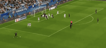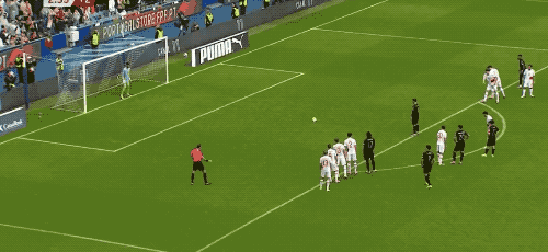第41分钟,葡萄牙获得前场位置不错的任意球,C罗停赛,若昂·内维斯操刀主罚,皮球滑过一道美妙的弧线,直挂死角。