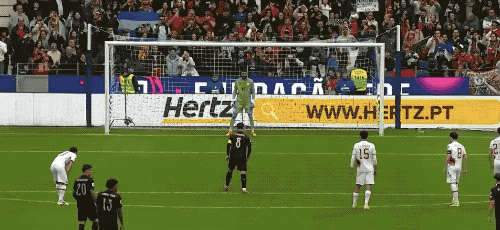 上半场补时阶段,葡萄牙获得角球,迪亚斯被直接拉倒,裁判果断判罚点球。